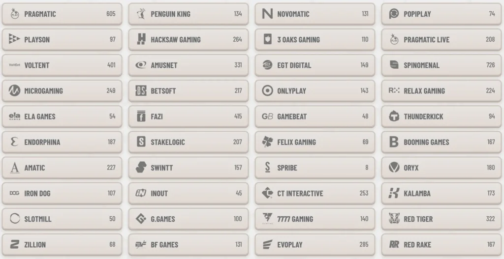 Wyns Casino nespoléhá na kvantitu na úkor kvality. Spolupracuje s více než 50 dodavateli softwaru. Kromě gigantů jako Microgaming či NetEnt zde najdete i inovativní studia jako Nolimit City (známé svými odvážnými tématy) nebo Hacksaw Gaming. Tato rozmanitost zaručuje, že si zde vybere úplně každý – od konzervativního hráče po hledače nejmodernějších trendů.